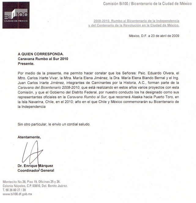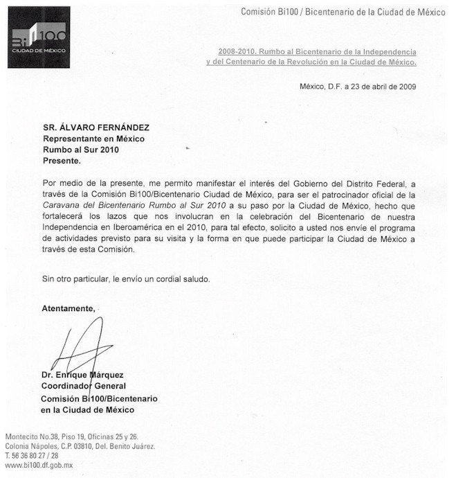 posicionamiento de la Caravana, o a la Comisión Bicentenario de Ciudad