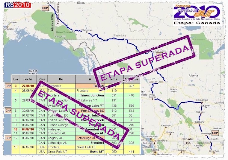 Hoja de ruta: Canadá: ETAPA SUPERADA desde el 27 de Junio al 05 de Julio del 2010 - 3,120 kms.