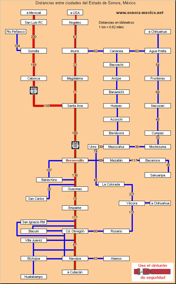 Mapa del Estado de Sonora, México